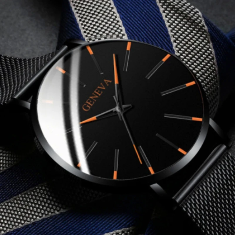 Popular Minimal Men's Watch: Slim, Simple, Stainless Steel Mesh Band